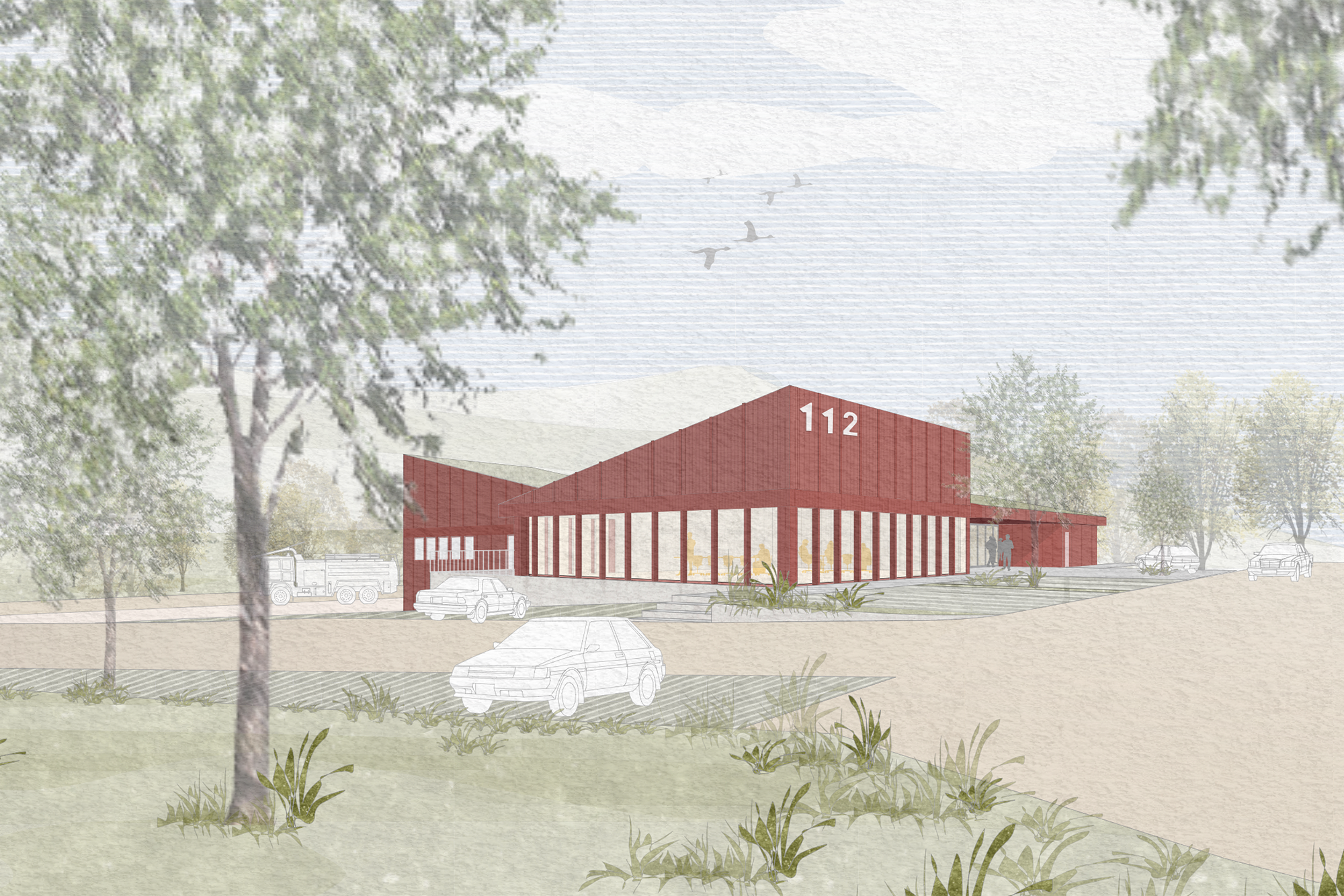 The fire station stands at the intersection of many path relationships. The topography results in a plane pushed into the slope, which accommodates the vehicle hall. The vehicle hall is generously glazed to the south and north. All load-bearing wall and ceiling components were constructed in cast-in-place concrete. A pitched roof was built over the training area.